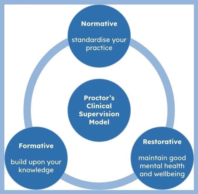 The Three-Function model was created by Brigid Proctor in 1986. It states that clinical supervision has three main cornerstones. Those are Normative, Formative and Restorative.